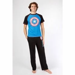 Master the art of patriotic super soldier Captain America’s defence with this Marvel-ous pyjama set! Even Steve Rogers would approve of this short sleeve ensemble decorated with a large emblem of Captain America’s legendary shield on the top’s front, paired with black bottoms which feature ‘Captain America’ printed down the side in the iconic colours of the United States of America flag. Crafted in a cotton rich material with an elasticated drawcord on the waist, and two handy pockets every follower of Marvel Avengers will be ready to achieve a star-spangled look for bedtime!.