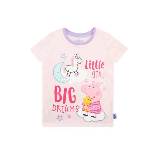 No dream is too big for your little piglet, so they’ll love going to bed in these adorable Peppa Pig pyjamas! This short-sleeve pyjama set showcases Peppa. The matching pj bottoms have an all over print, with cuffed ankles for extra comfort. Young Peppa fans will float into a magical dreamland in these oink-tastic pjs!